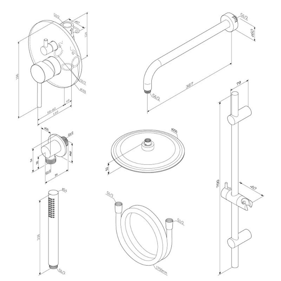 936530000 Scandinavian Pure встраиваемая душевая система с душевым смесителем и штангой, хром