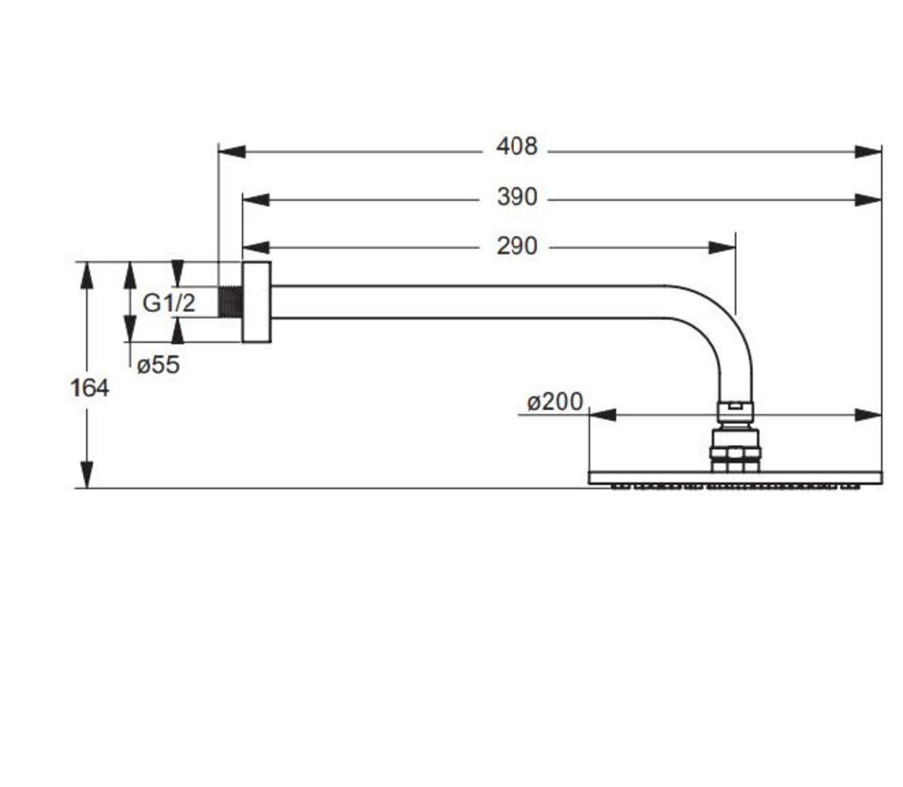 - 1-функциональный верхний душ BA193AA SEVAJET M1: Ø200 мм с рукояткой 300 мм