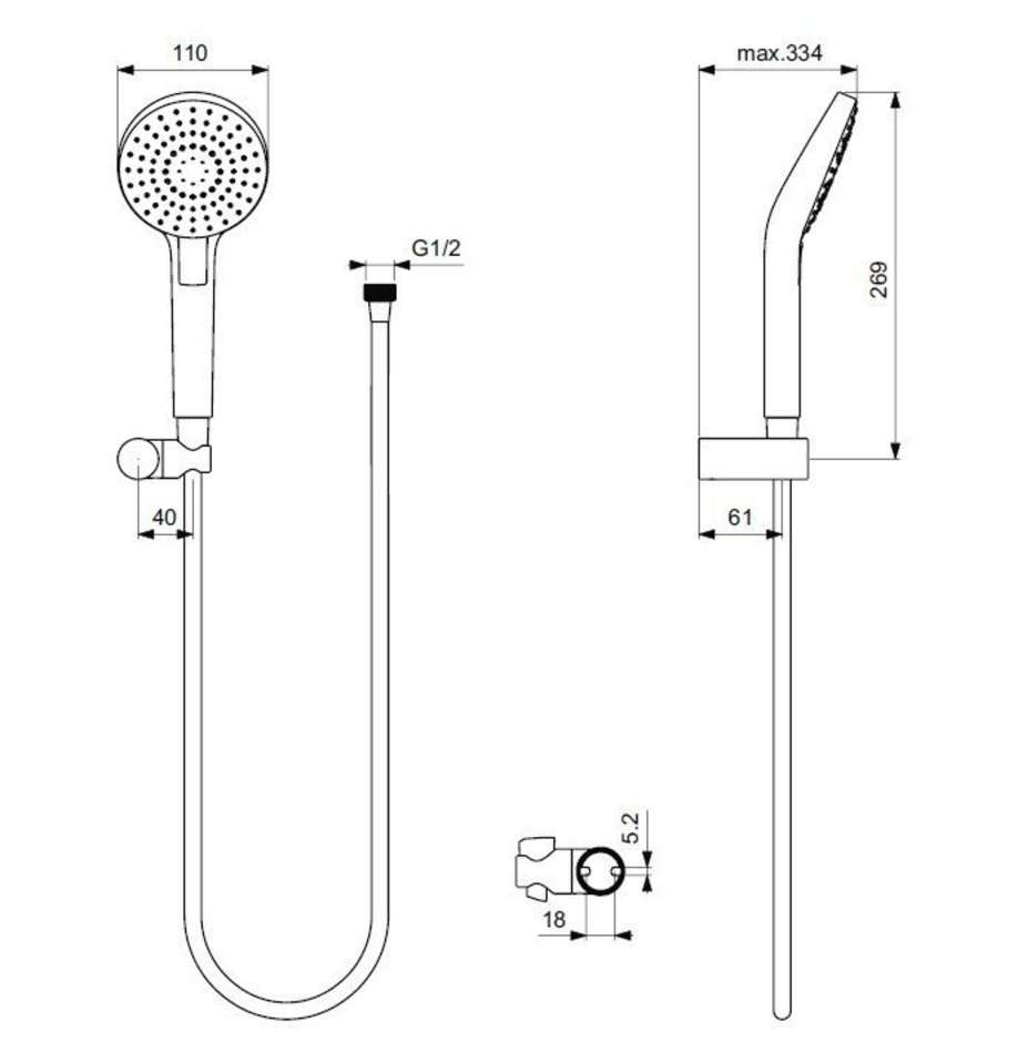 - Душевой комплект с настенным держателем B2239AA IDEALRAIN EVO ROUND L3: 3-функциональная легкоочищаемая лейка Ø110 мм, шланг 1750 мм IDEALFLEX®, пластиковый держатель лейки;