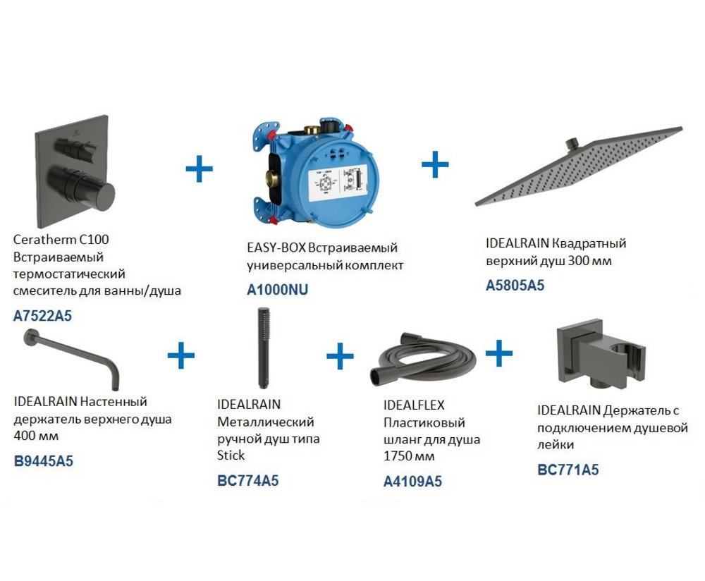 Душевая система Ideal Standard Ceratherm A7572A5 ALL in ONE 7 в 1 PVD, термостатическая, magnetic grey - серый магнит