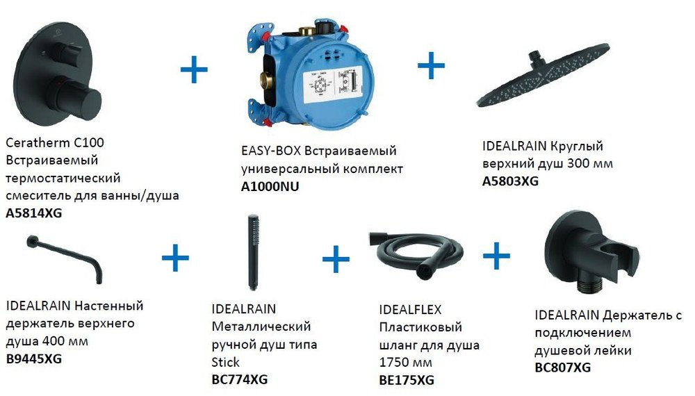 Душевая система Ideal Standard Ceratherm 7 в 1, термостатическая, черный A7573XG