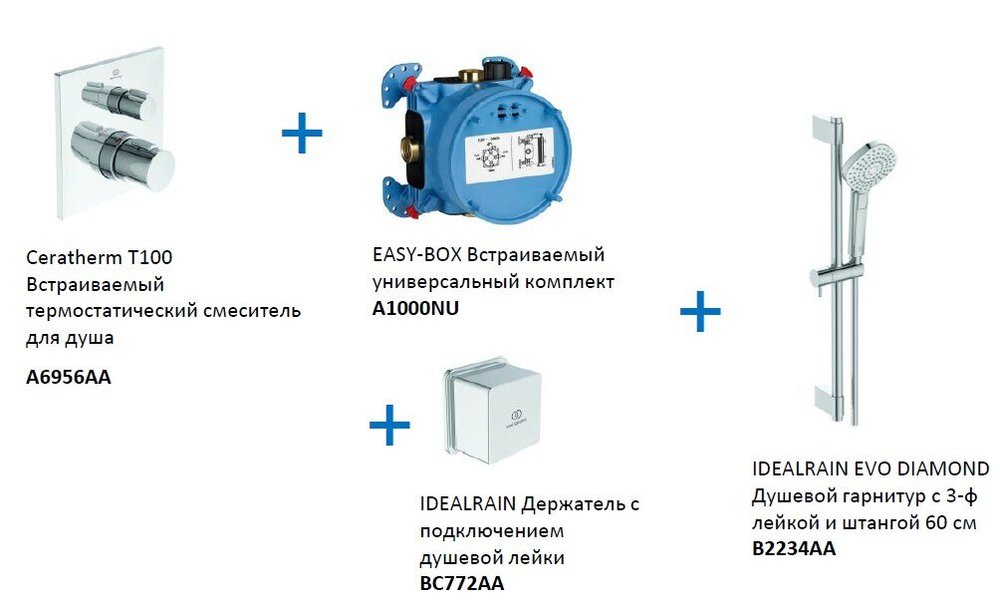 - Ceratherm T 100 Встраиваемый термостатический смеситель для душа A6956AA