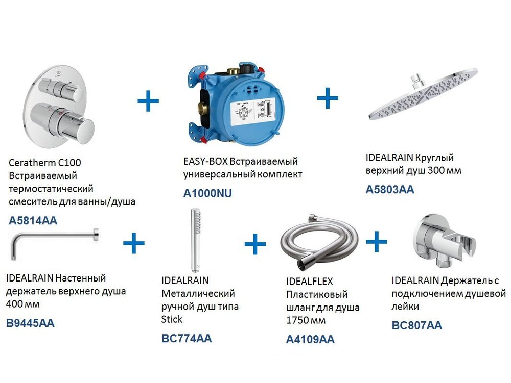 Душевая система Ideal Standard Ceratherm ALL in ONE 7 в 1, термостатическая, хром, A7573AA