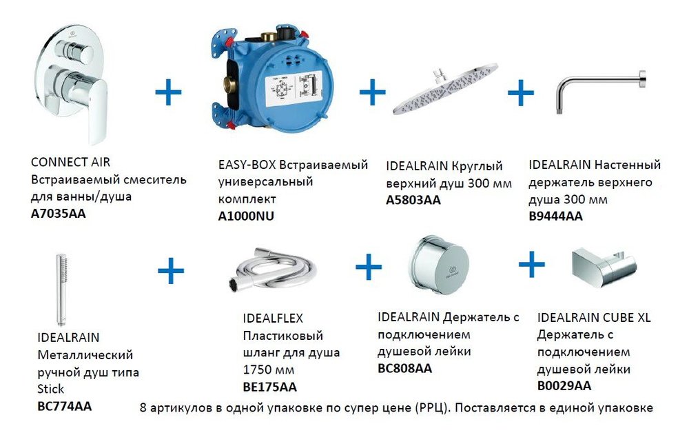 Душевая система Ideal Standard Connect Air 8 в 1, A7574AA