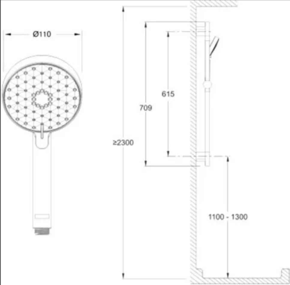 - Размер душа: 40 x 25 см, форма прямоугольная, материал металл, 1 режим струи.