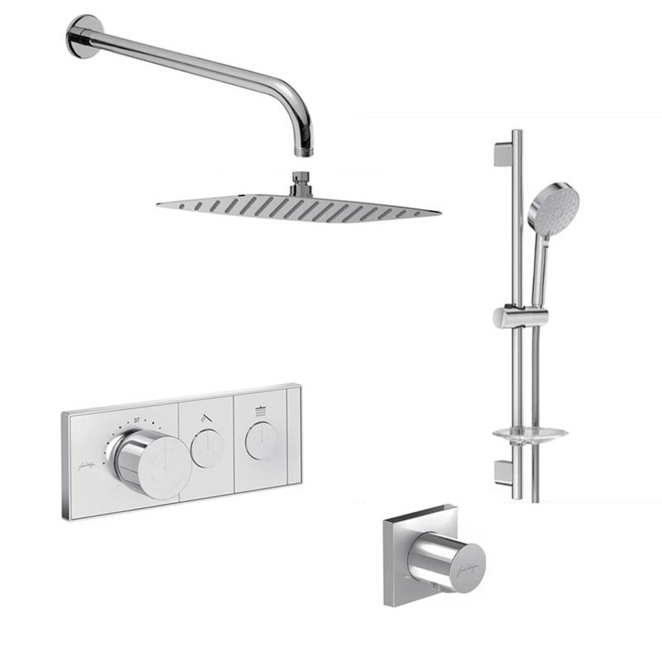 Душевая система Jacob Delafon, термостатическая, хром, комплект: душевой гарнитур, смеситель, верхний душ, кронштейн, шланговое подключение