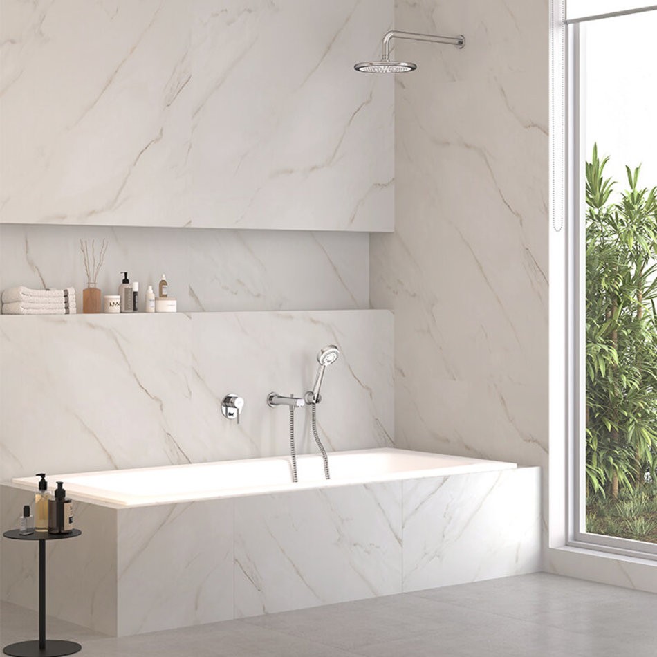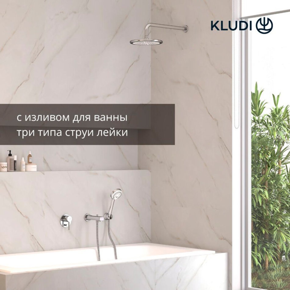 Оснащение: смеситель для ванны и душа, душевой гарнитур, верхний душ, кронштейн, излив для ванны, клапан защиты от обратного потока
