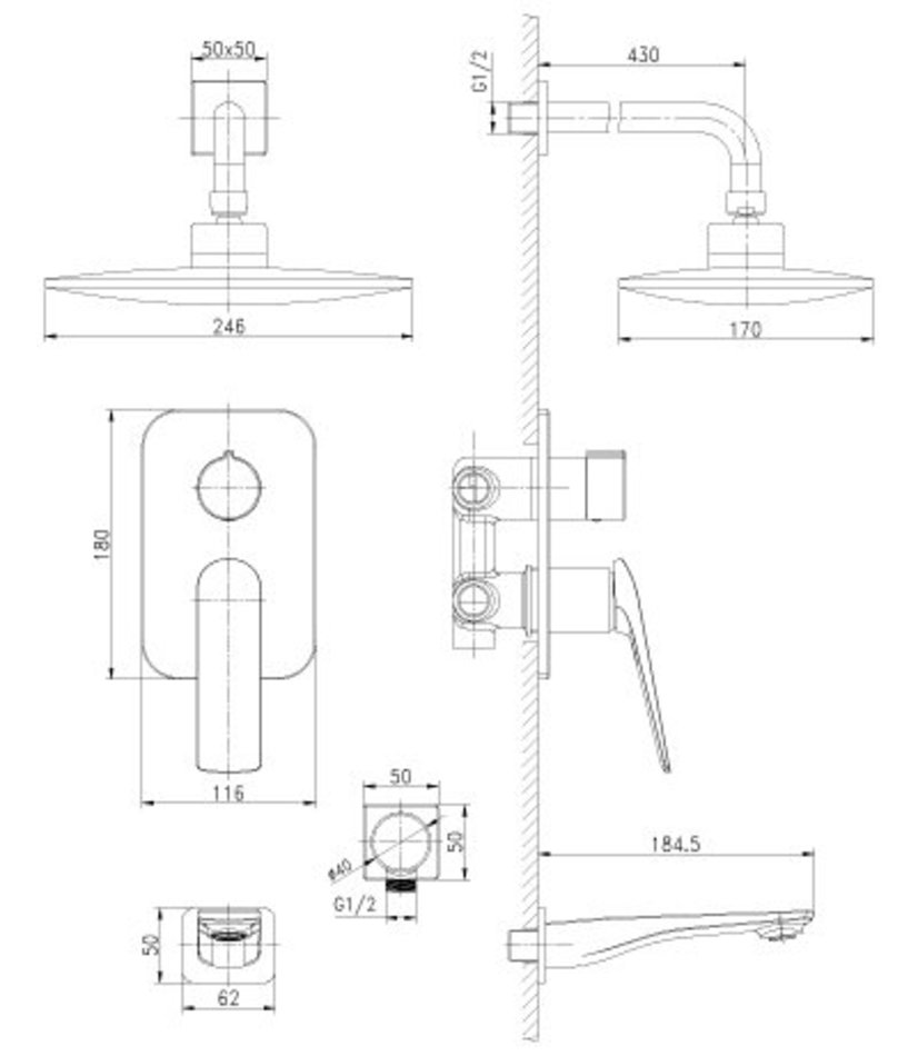 Душевая система Lemark Allegro LM5922CW с внутренней частью (с душевой лейкой), хром/белый