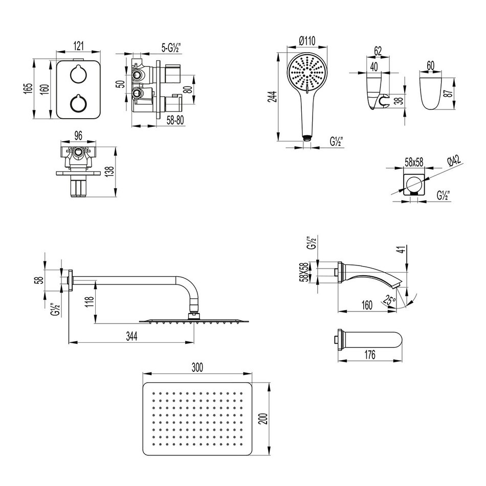 - Расход воды при 0,3 МРа (излив/душевая лейка/лейка верхнего душа): 19,7/7,8/8,4 л/мин.