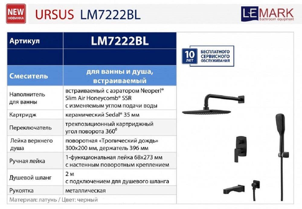 Душевая система Lemark Ursus LM7222BL, цвет чёрный