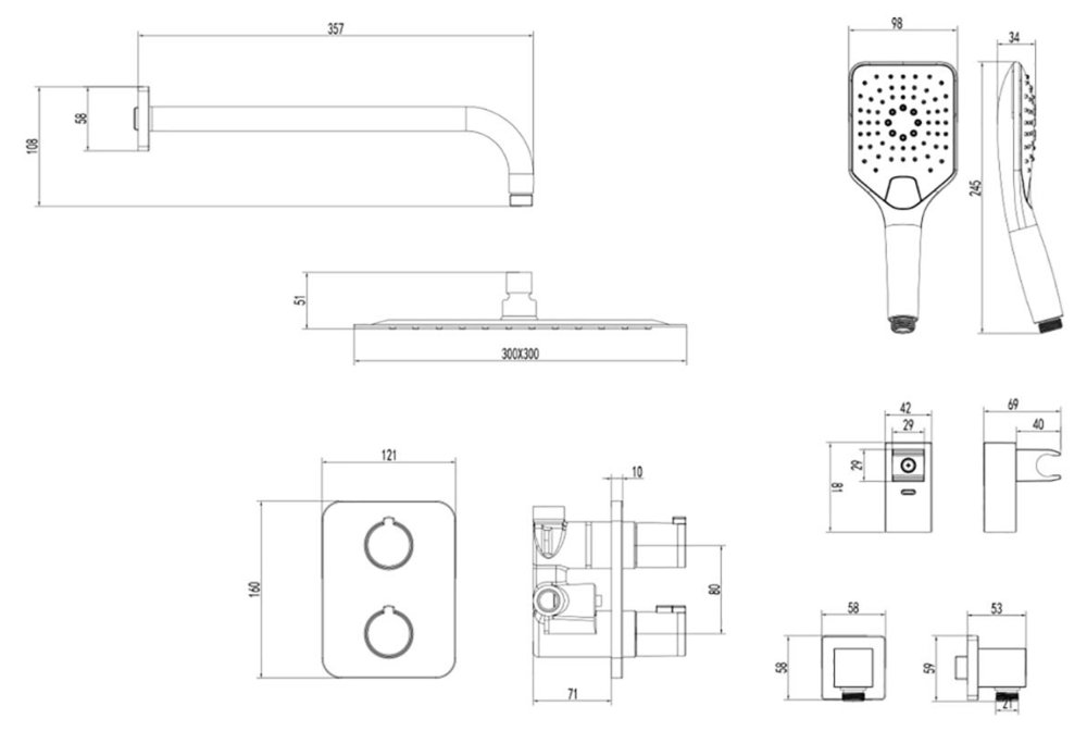 - Верхняя поворотная душевая лейка «Тропический дождь» 300x300 мм