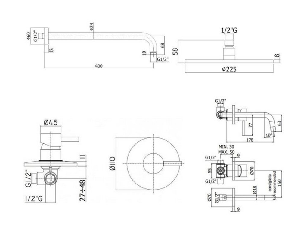 - Верхний душ Paffoni Master ZSOF074NO, 22.5х22.5 см, 1 режим струи, без держателя, цвет черный матовый