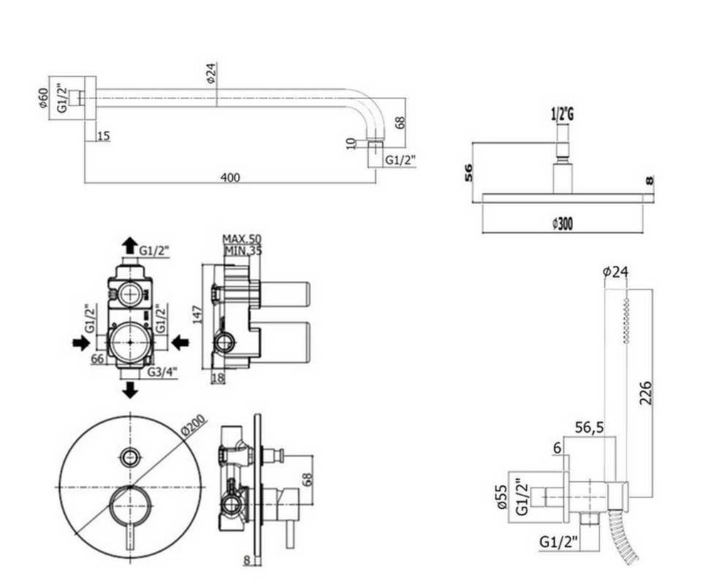 - Верхний душ Paffoni Master King ZSOF079CR 30 см, без держателя, антикальций, хром