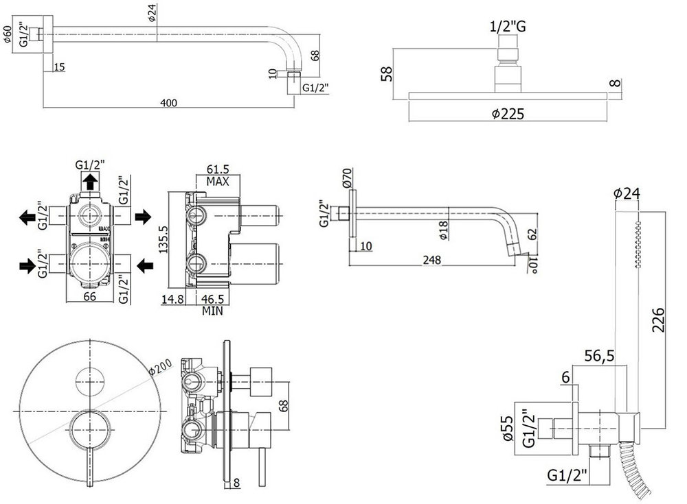 Душевая система Paffoni KIT LIG встраиваемая, с изливом, хром, KITLIG019CR046