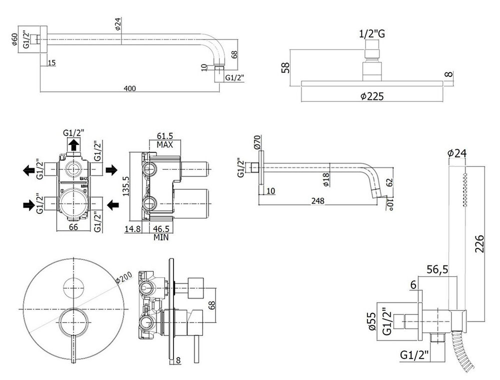 Душевая система Paffoni KIT LIG встраиваемая, с изливом, черный матовый, KITLIG019NO046