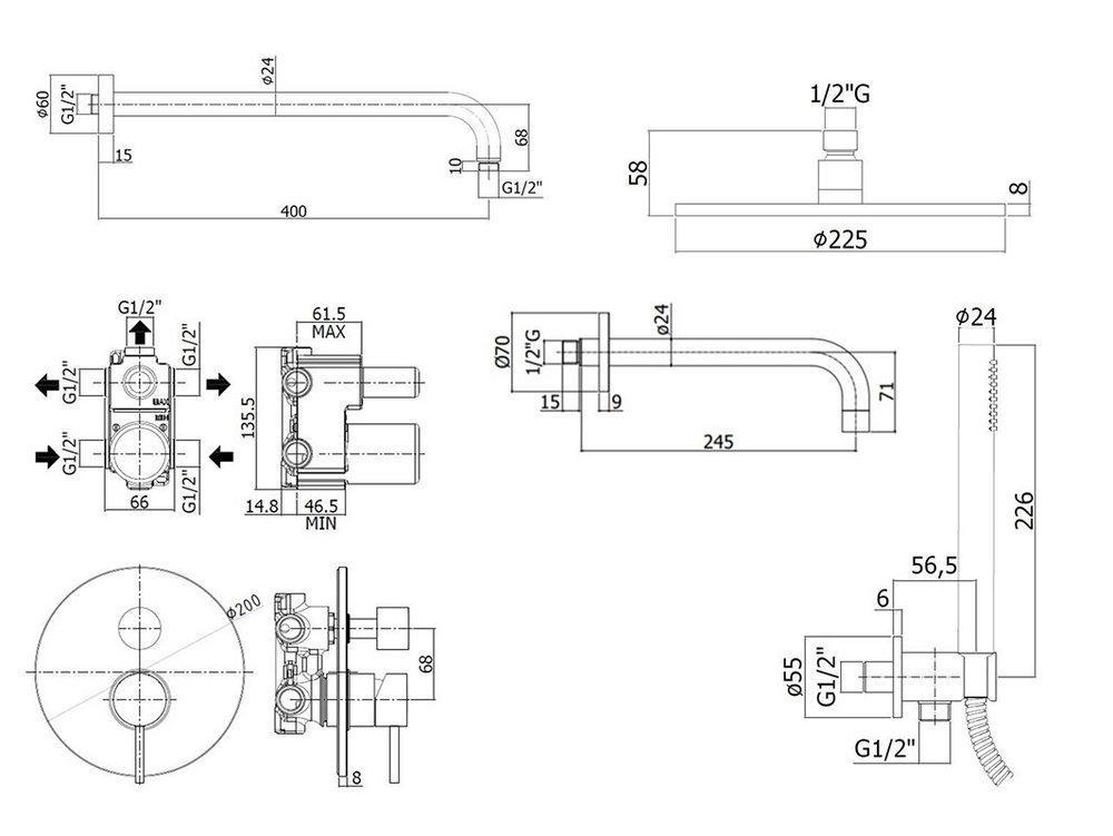 - Верхний душ Paffoni Master ZSOF074NO, 22.5х22.5 см, 1 режим струи, без держателя, черный матовый