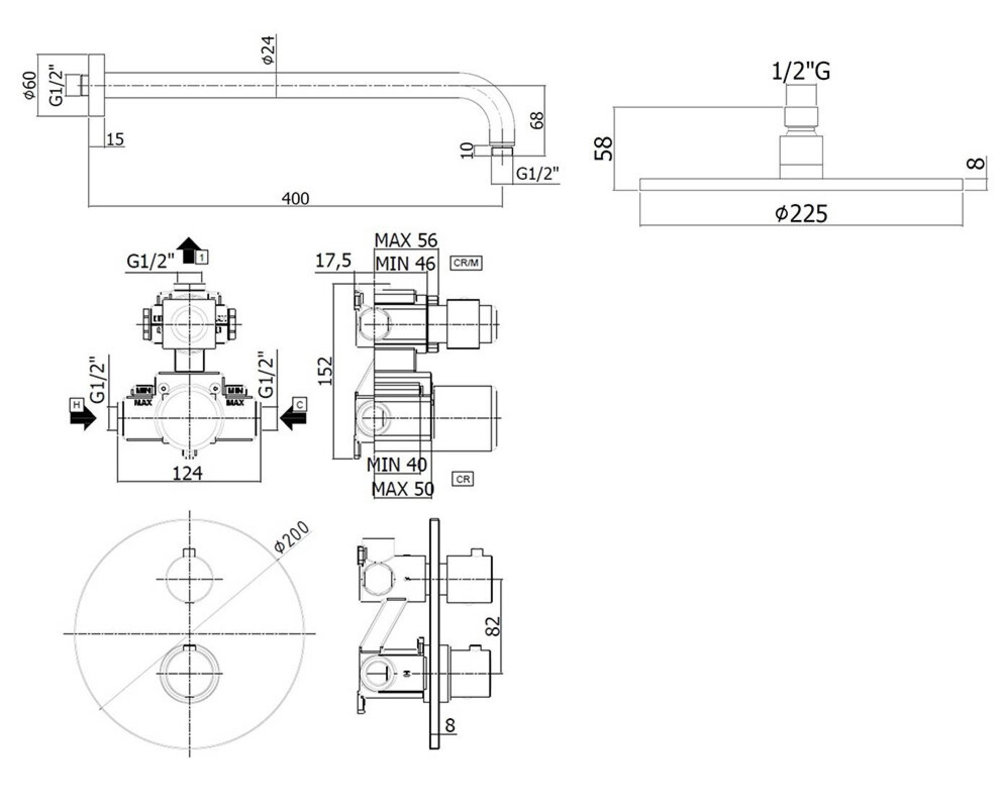 - Верхний душ Paffoni Master ZSOF074BO, 225 мм, 1 режим струи, без держателя, белый матовый