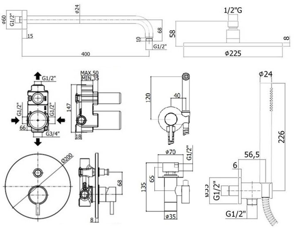 - Душевой гарнитур +водорозетка с подключением воды Paffoni Master ZDUP094CR, хром