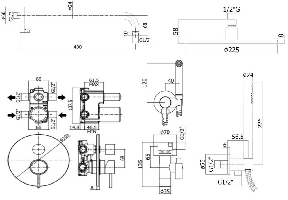 - Душевой гарнитур +водорозетка с подключением воды Paffoni Master ZDUP094CR, хром