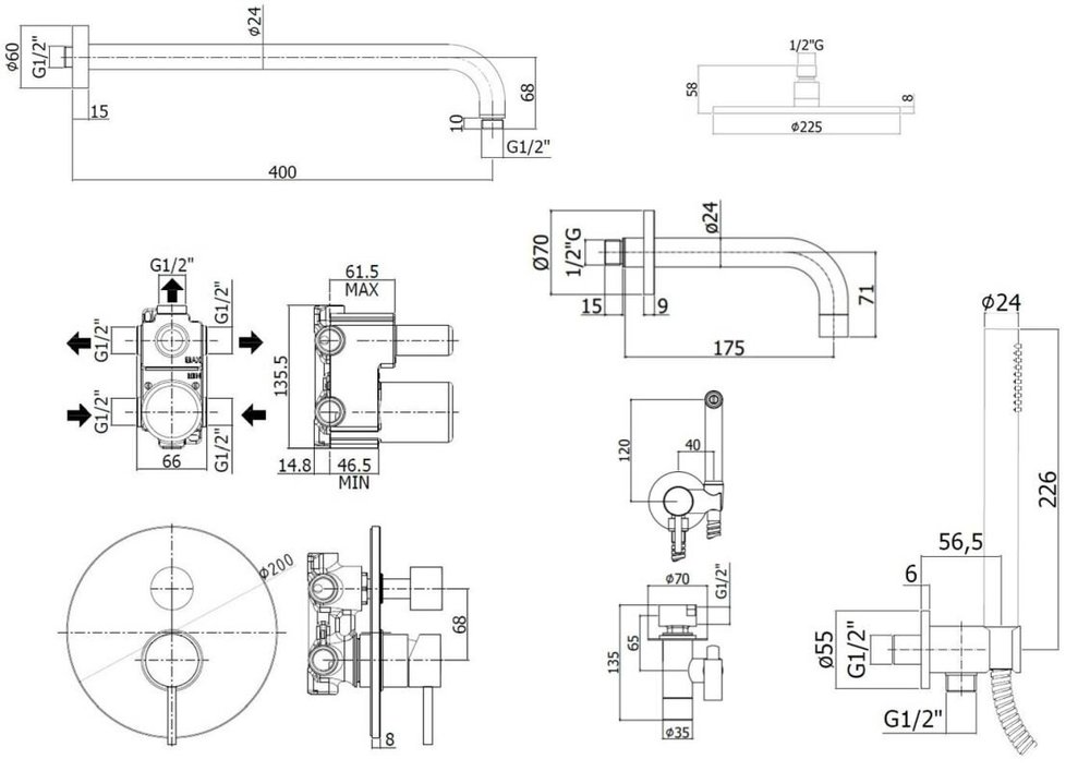 Душевая система Paffoni KIT LIG встраиваемая, с гигиеническим душем, с изливом, хром, KITZLIG019CR139