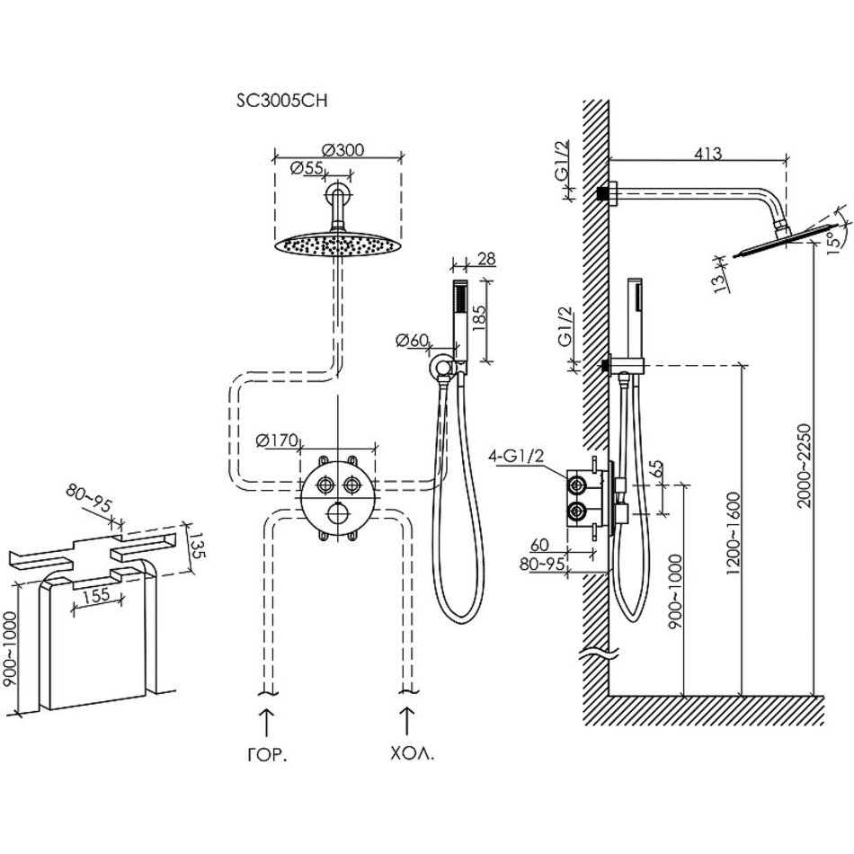 Душевая система Sancos Link SC3005MB, термостатическая, цвет черный матовый