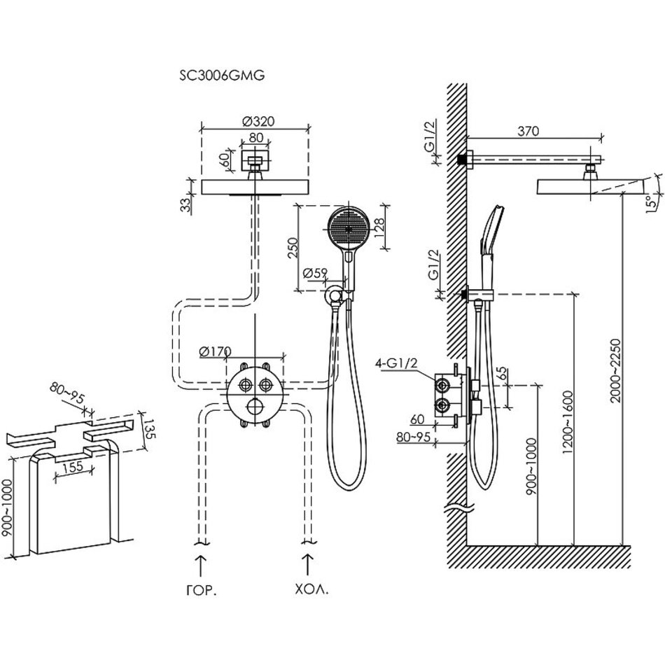 Душевая система Sancos Space SC3006GMG, термостатическая, воронёная сталь, gunmetal