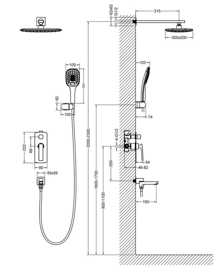 - Штанга тропического душа с декоративным отражателем - 1 шт.