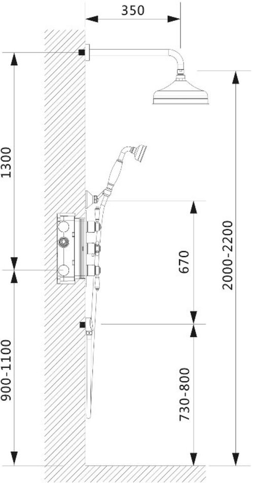 - Диаметр лейки верхнего душа: 200 мм