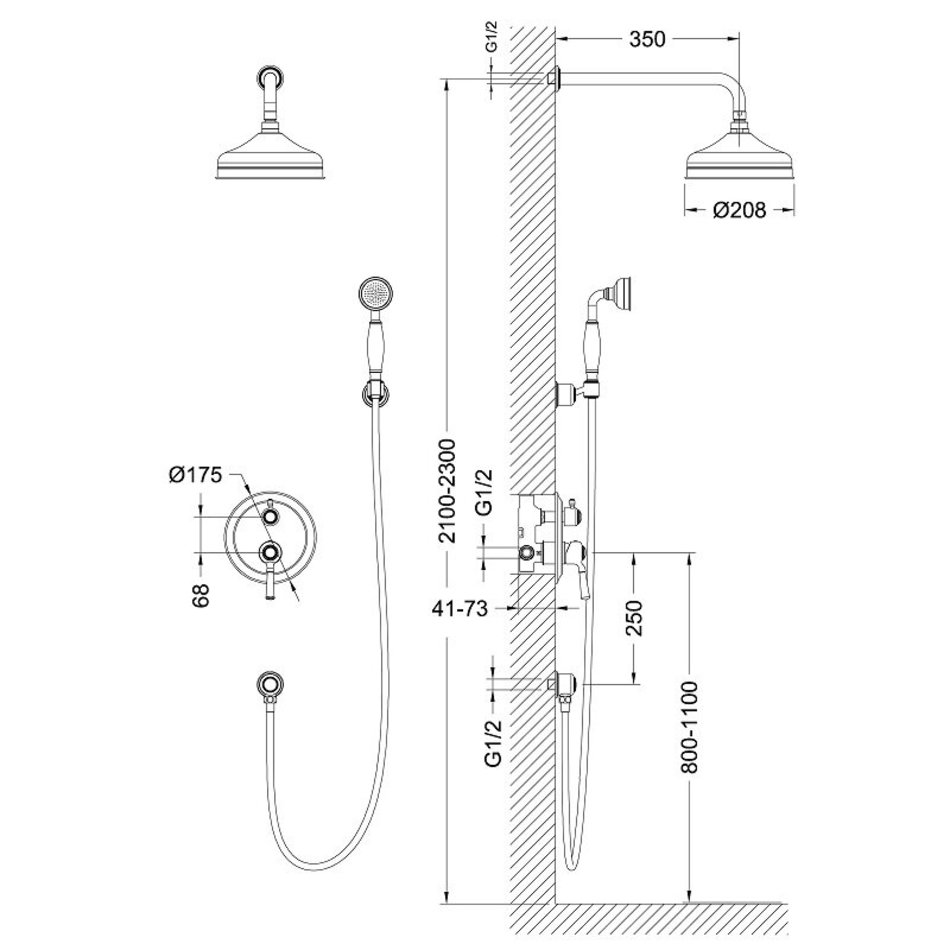 - Размер лейки верхнего душа: 20.8 см в диаметре