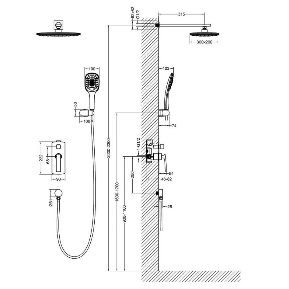 - Форма лейки верхнего душа: прямоугольная