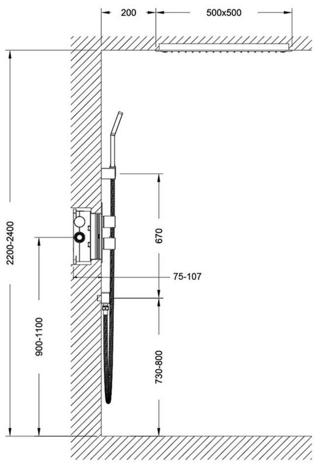 - Душевая система скрытого монтажа, с термостатом с квадратной лейкой (латунь) в стиле модерн