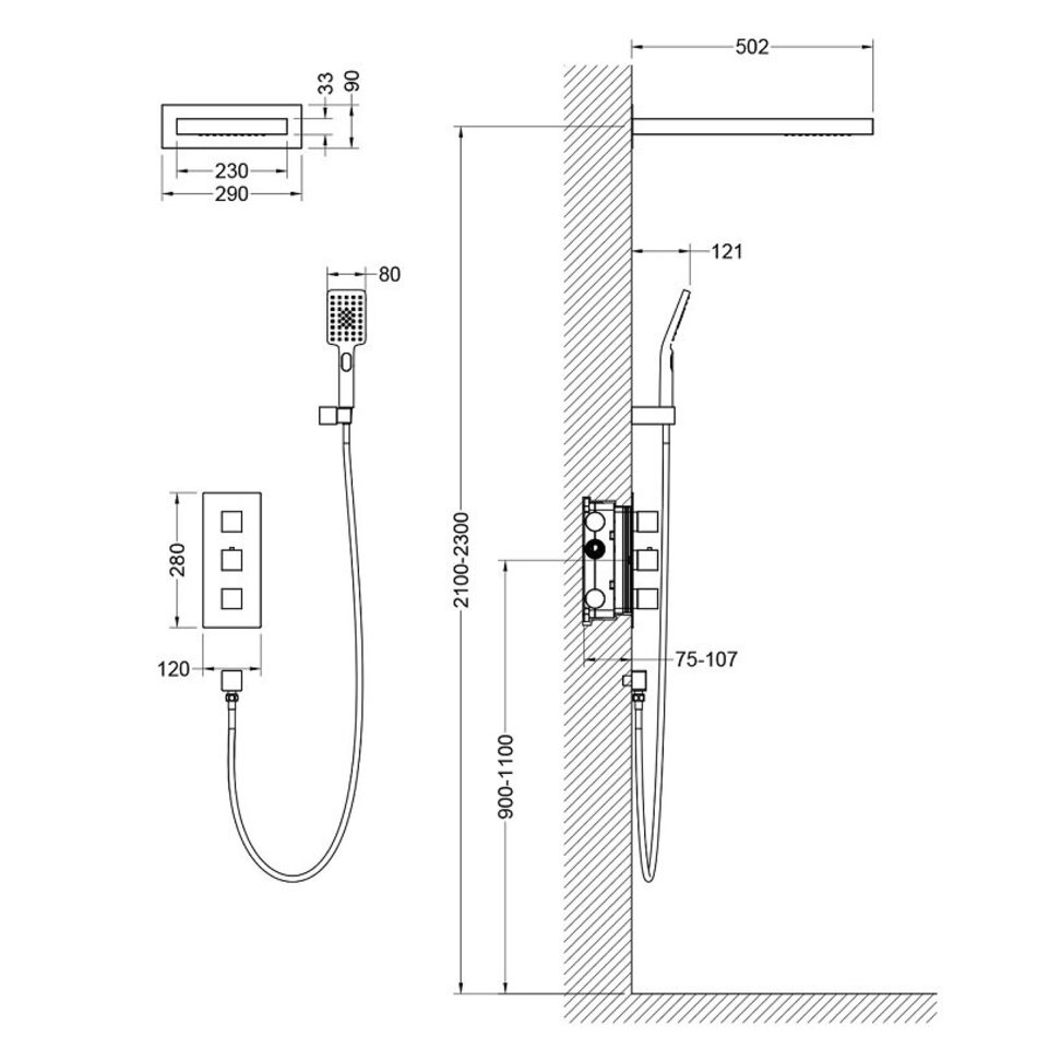 - Тропический душ, настенный, скрытого монтажа, (латунный) - 1 шт.