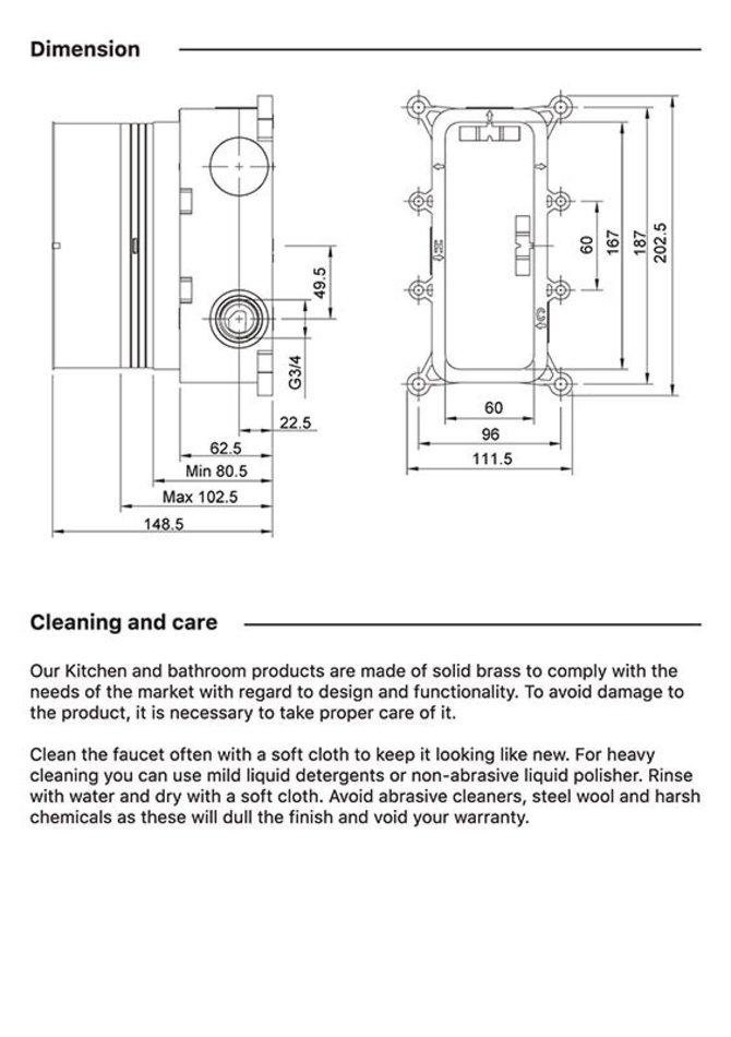 - Смеситель с монтажной коробкой, скрытого монтажа, с термостатом - 1 шт.