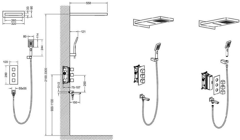 - Смеситель с монтажной коробкой, скрытого монтажа, с термостатом - 1 шт.