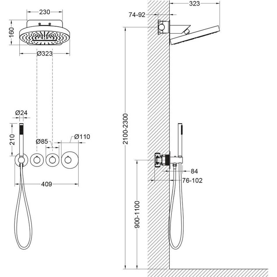 - Размер верхнего душа Ø 323 мм