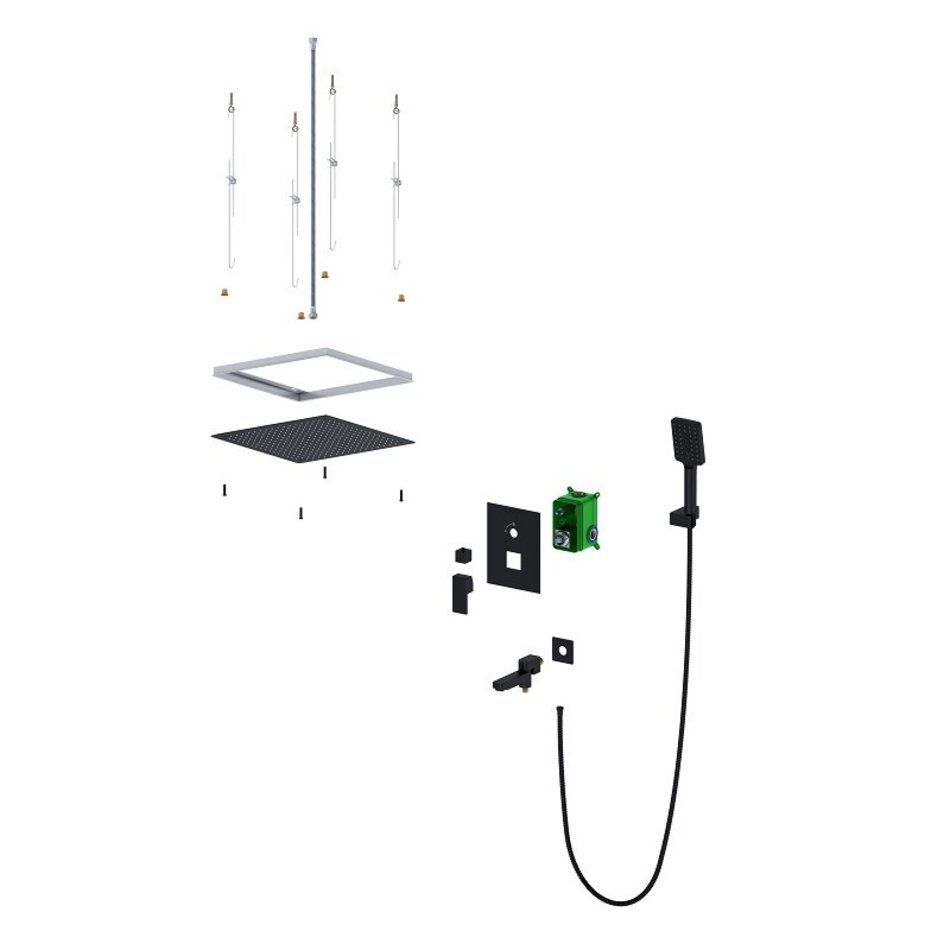 - Душевая система скрытого монтажа с квадратной лейкой в стиле модерн