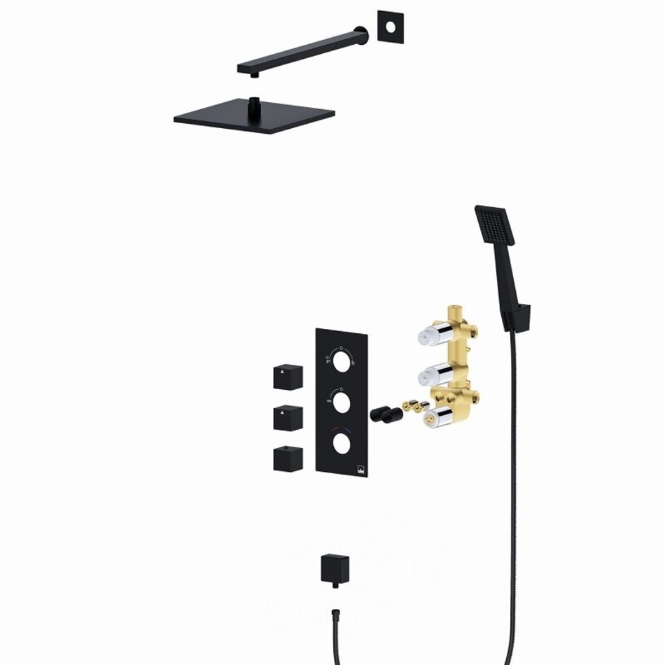 Душевая система Timo Tetra-Thermo, 2 потребителя, термостатическая, цвет чёрный матовый, SX-0179/03SM