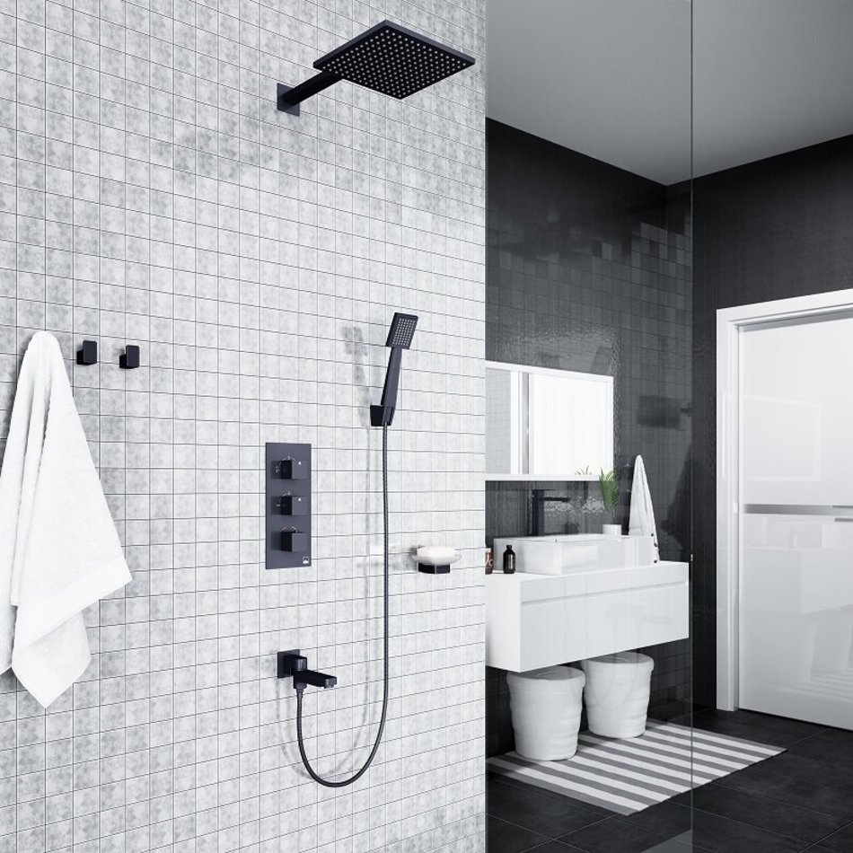 Душевая система Timo Tetra-Thermo, 3 потребителя, термостатическая, с изливом, цвет чёрный матовый, SX-0199/03SM