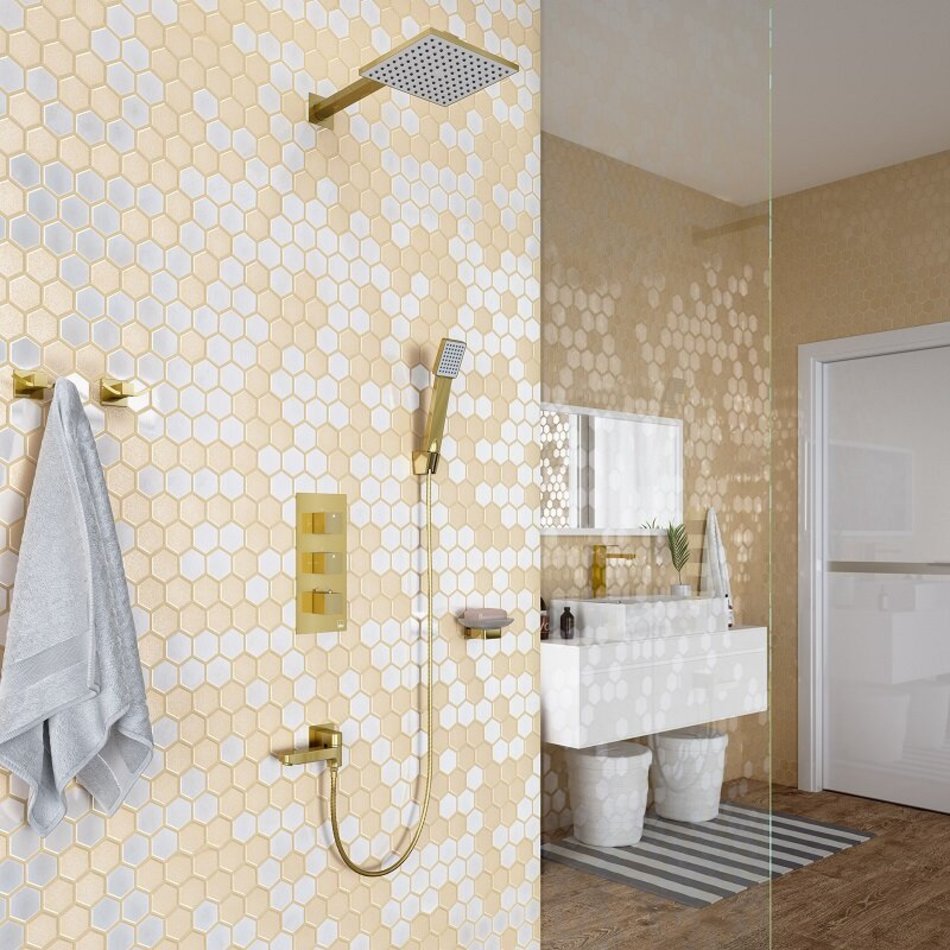 Душевая система Timo Tetra-Thermo, термостатическая, с изливом, цвет золото матовое, SX-0199/17SM