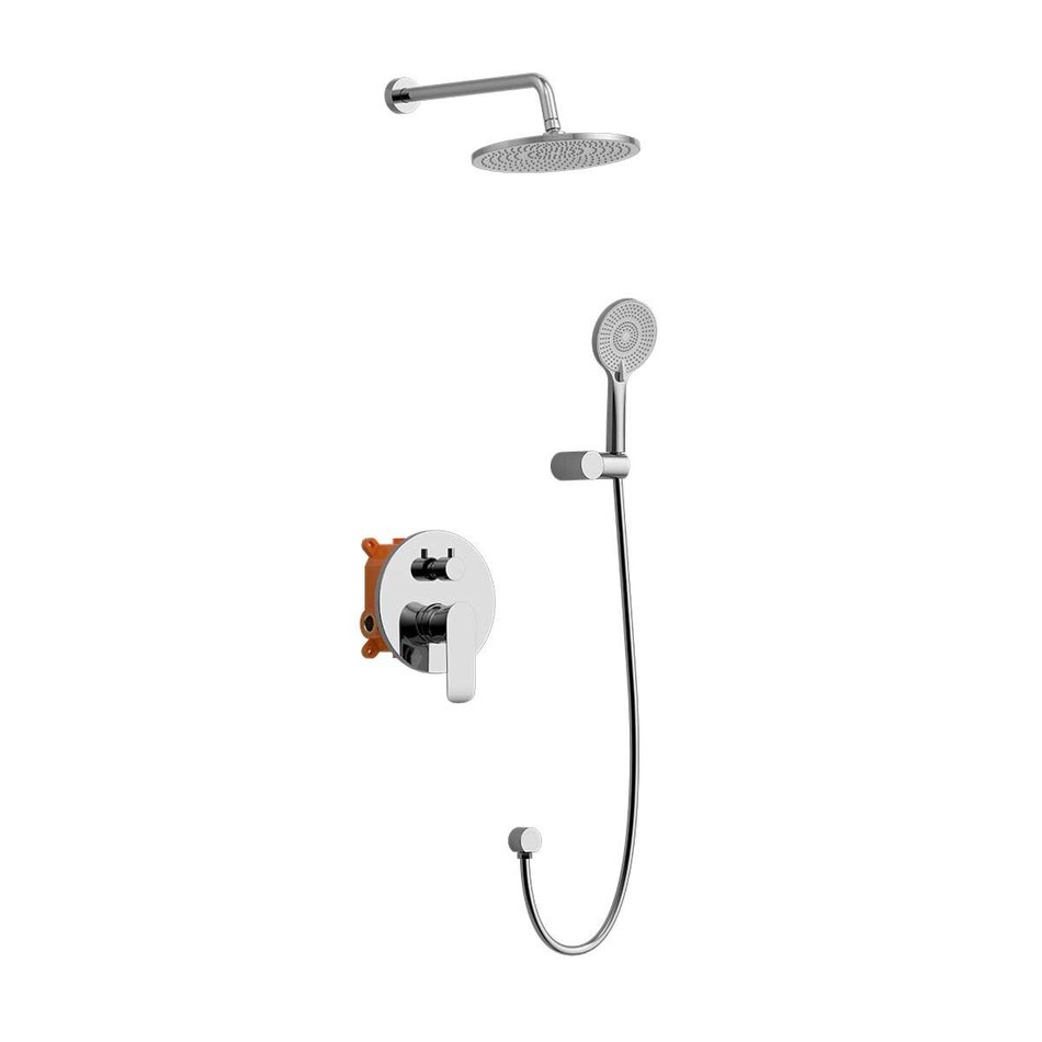 Состав комплекта: верхний душ, ручной душ, смеситель со встраиваемой частью