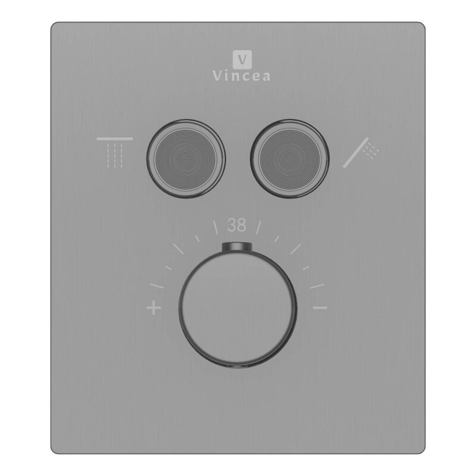 - Смеситель Vincea VSCV-321T-MGM для душа, термостатический, на 2 потребителя, цвет вороненая сталь