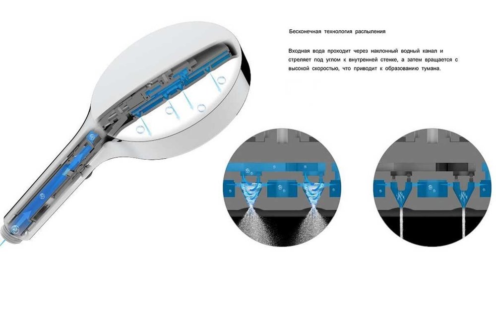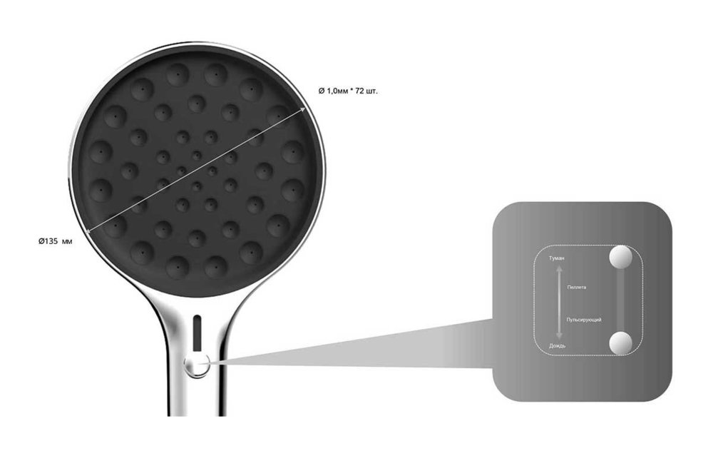 - 4-х режимный ручной душ из ABS cо слайдером (Rain - Pulsating Rain - SPA - Mist)