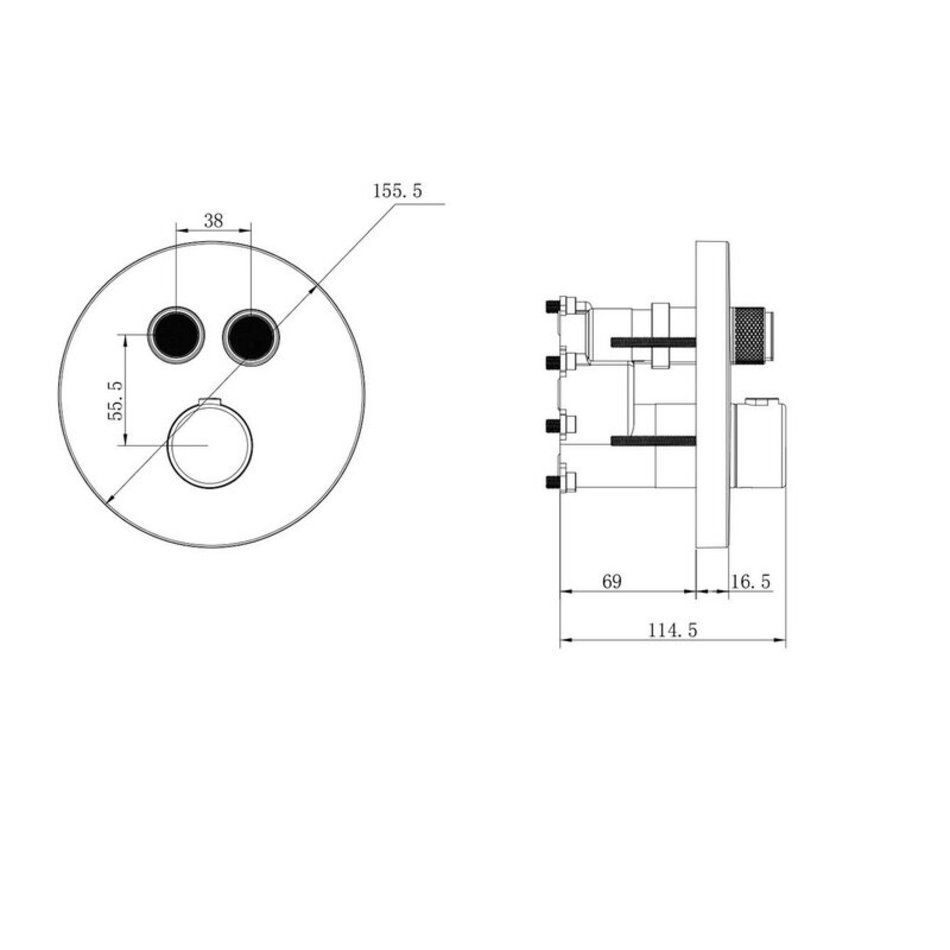 - Смеситель Vincea VSCV-322T-MGM для душа, термостатический, на 2 потребителя, цвет вороненая сталь