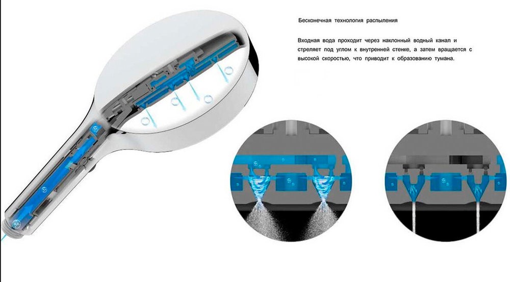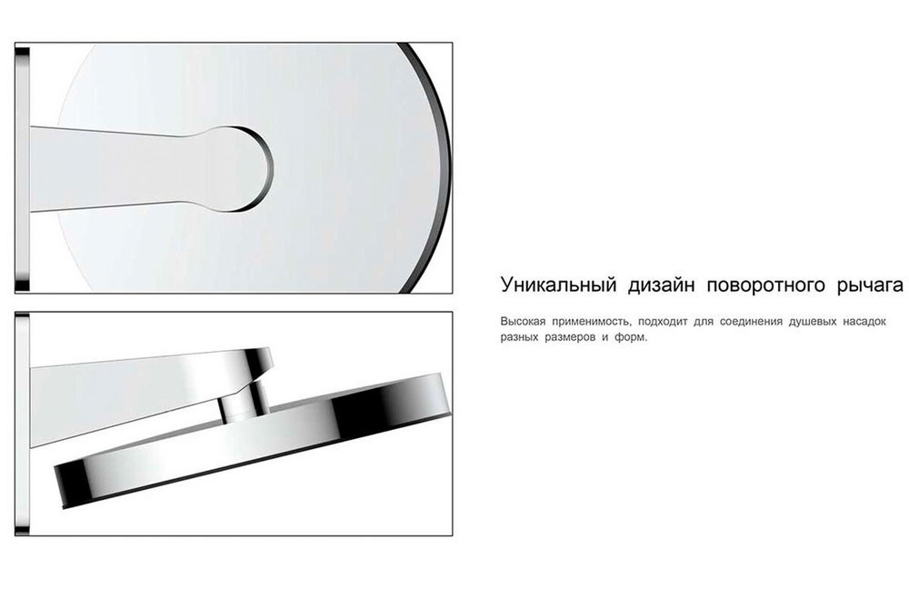 - Описание верхнего душа: ABS/латунь (режим работы Rain)