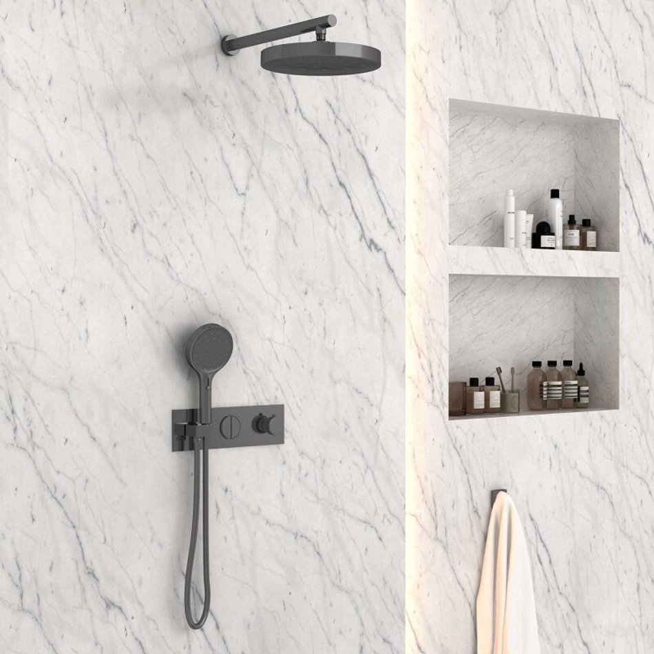 Душевая система Vincea Inspire VSFW-422TI2GM, термостатическая, на 2 потребителя, воронёная сталь, gunmetal