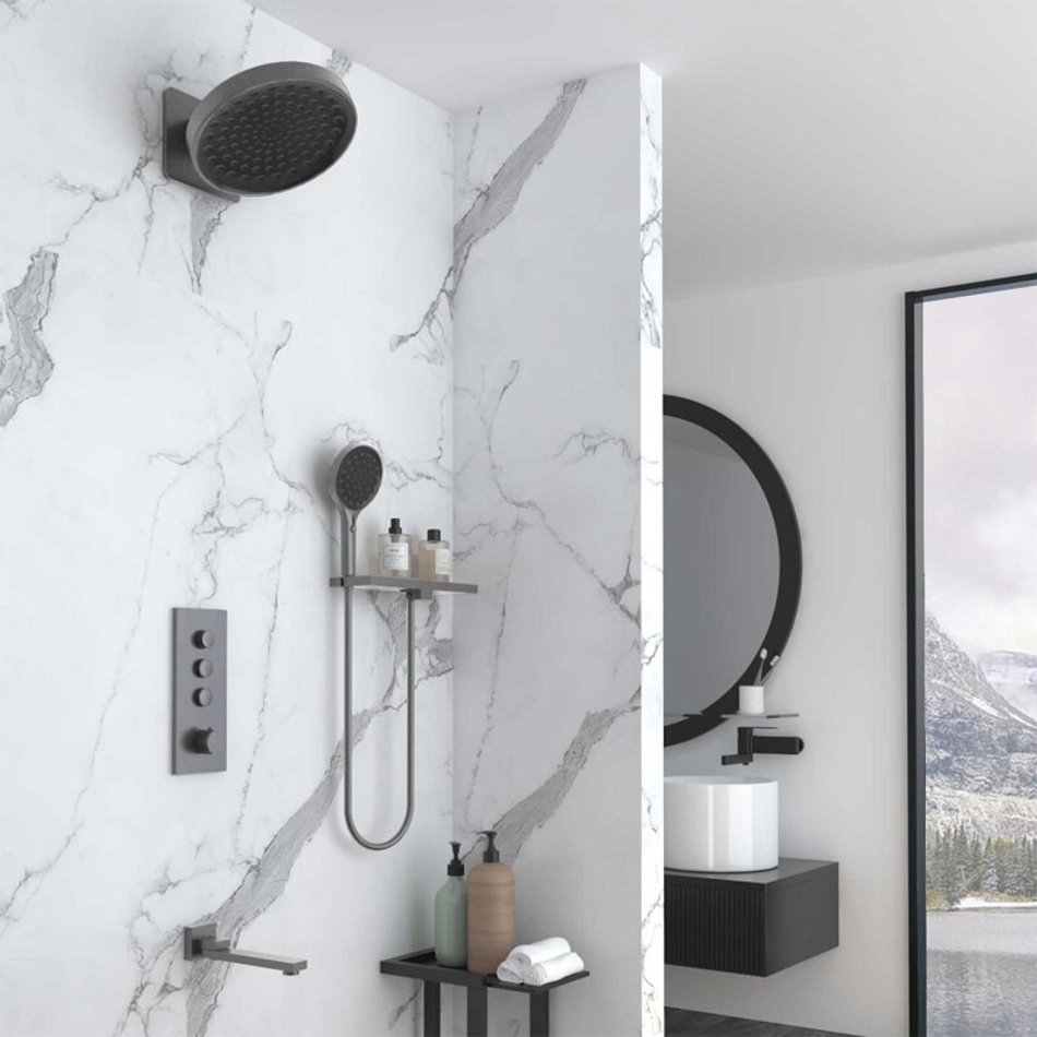 - Смеситель Vincea для душа, термостатический, на 3 потребителя, цвет вороненая сталь, VSCV-433TGM