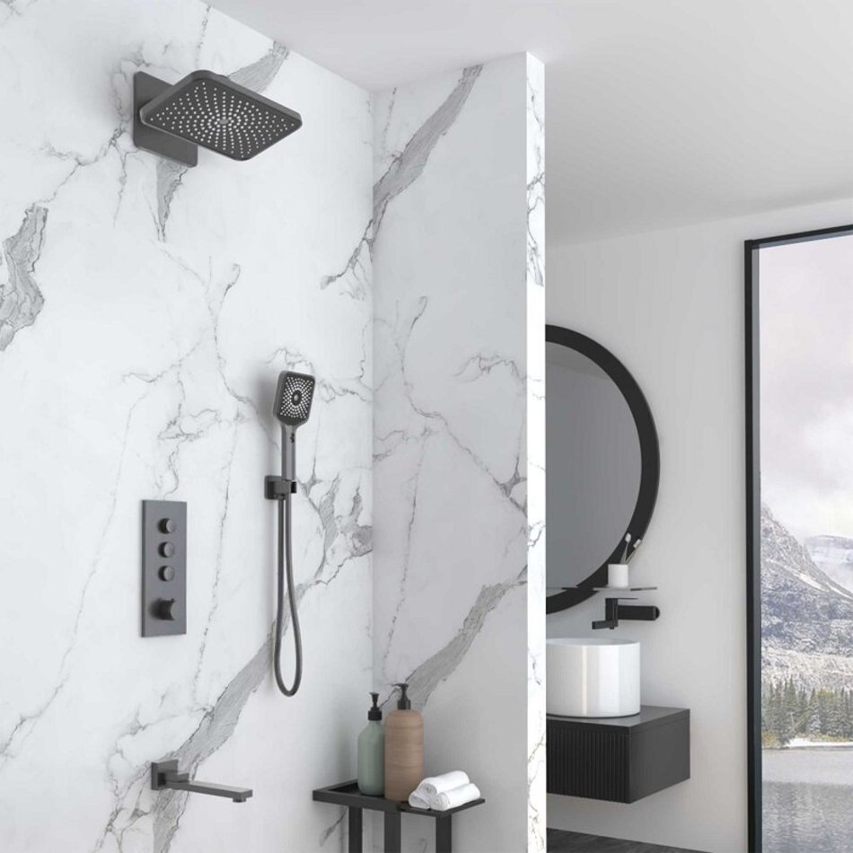 Душевая система Vincea Inspire VSFW-433TI4GM, термостатическая, воронёная сталь, gunmetal