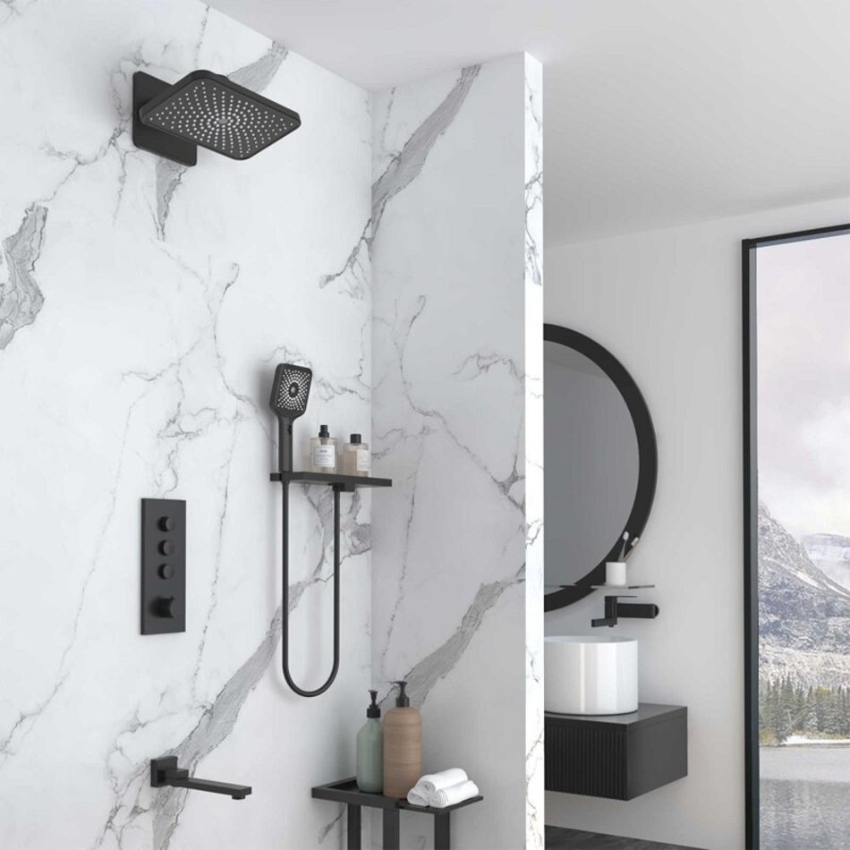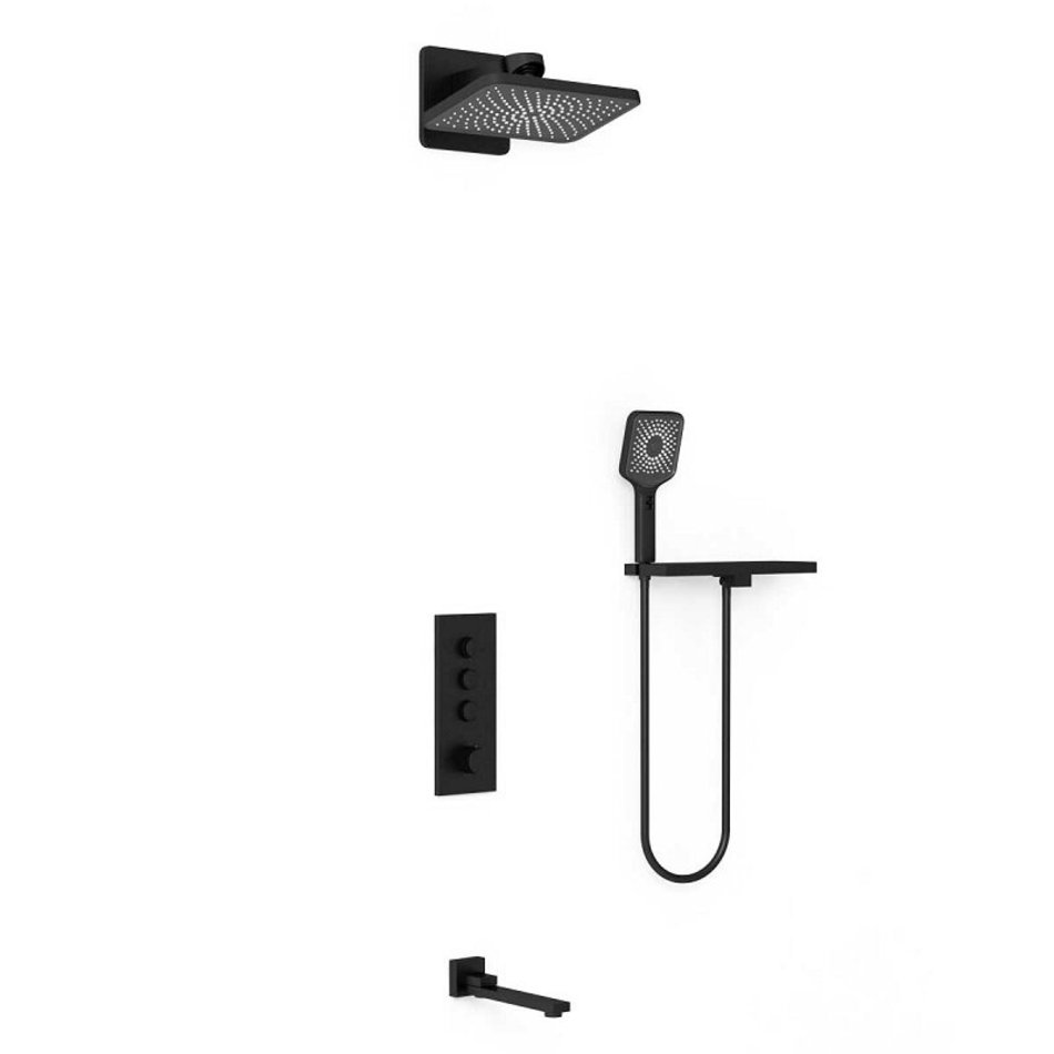 - Смеситель Vincea для душа, термостатический, на 3 потребителя, цвет черный матовый, VSCV-433TMB
