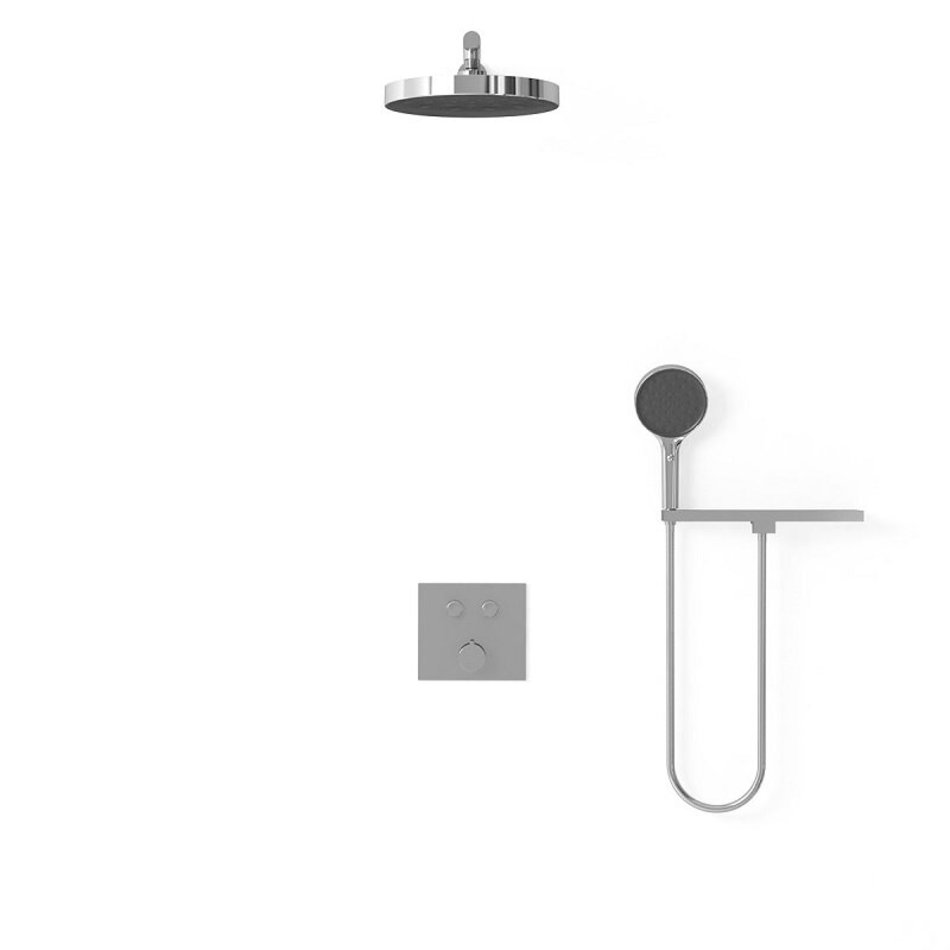 - Комплектация: верхний душ, полка с держателем ручного душа, ручной душ, смеситель со встраиваемой частью