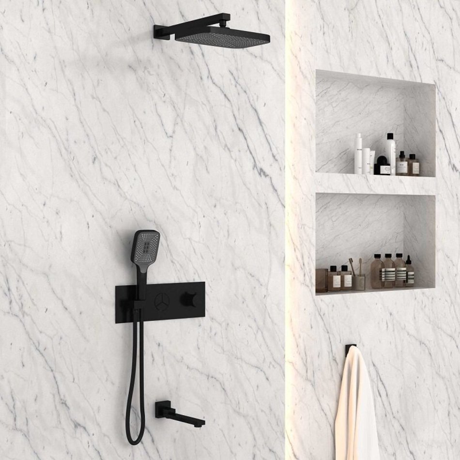 Душевая система Vincea, термостатическая, 3 потребителя, с изливом, цвет черный матовый, VSFW-432T1MB